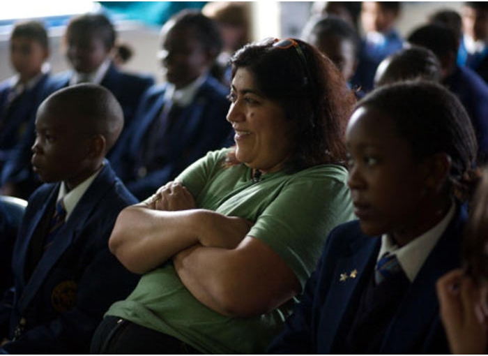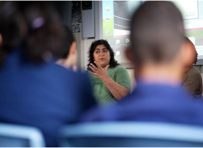 Director Gurinder Chadha talks to pupils at a school in Hendon, London as part of a BAFTA event with FILMCLUB (pic: BAFTA / Mark Chilvers).