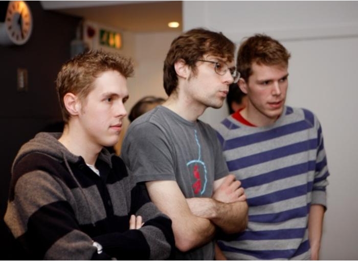Danny Leaver, Anton Kirczenow and Jonny Hopper of Media molecule watch as workshop participants take turns to describe the games they have designed (BAFTA/Marc Hoberman).