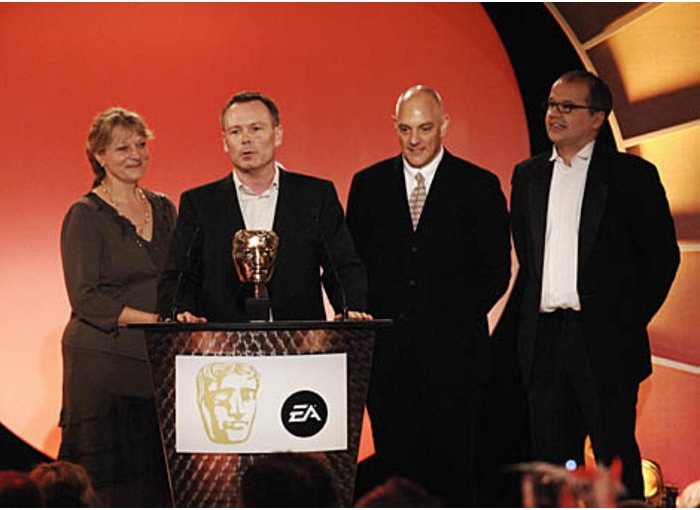 Gaming fans Matt Littler and Duncan Jeffries - aka Max and O.B. from Hollyoaks - were on hand once again to present the Video Game Award (pic: BAFTA / Richard Kendal).
