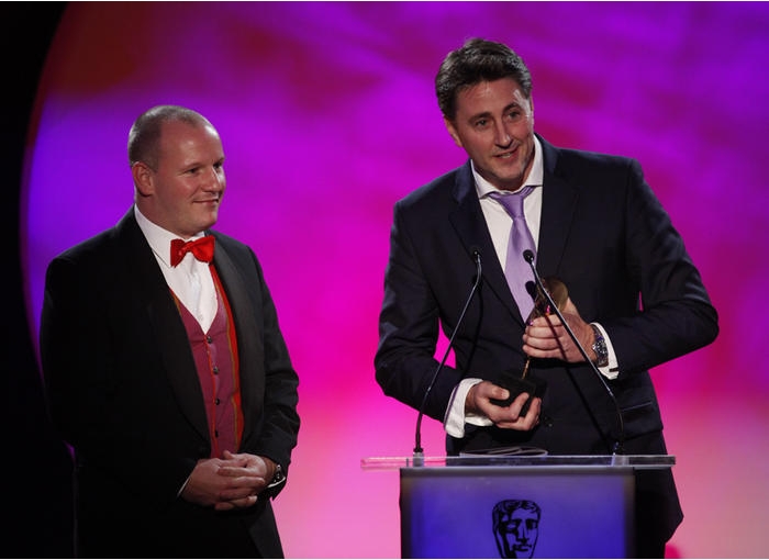 Phil Davies, Neville Astley and Mark Baker collect the BAFTA for Pre-School Animation, awarded to Peppa Pig.
