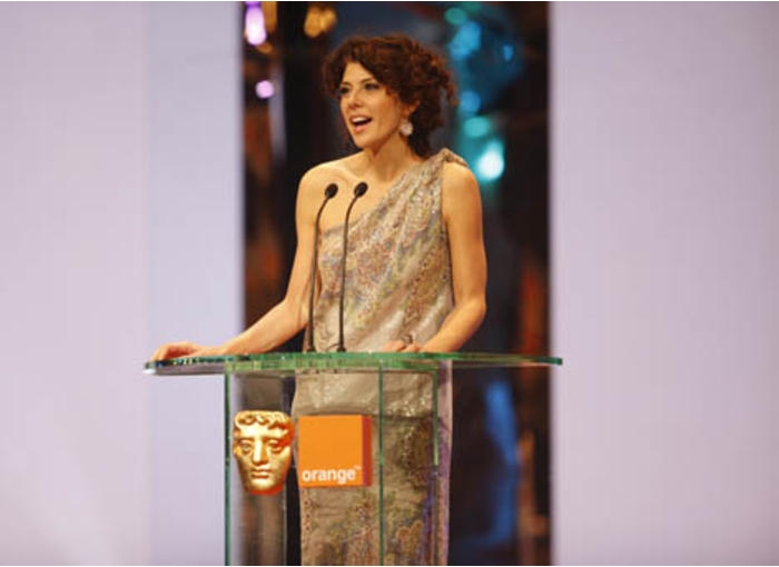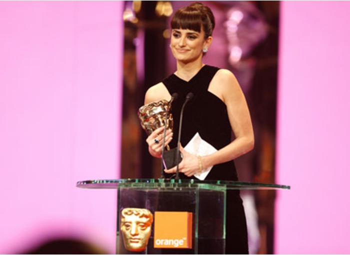 Penelope Cruz collects her first career BAFTA for her Supporting Actress role in Woody Allen's Vicky Cristina Barcelona (BAFTA / Marc Hoberman).