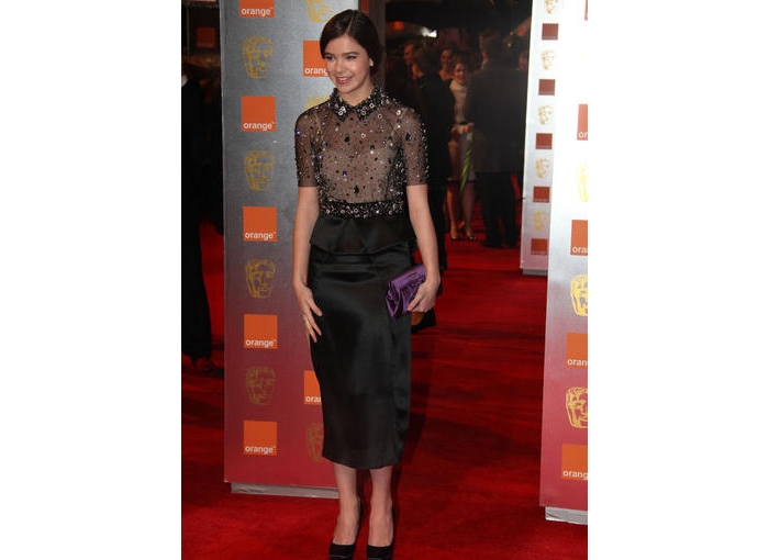 Steinfeld stars as the courageous Mattie Ross in True Grit. At 14, she is the youngest actor to be nominated for a leading performance. Steinfeld is wearing a black Miu Miu dress with embellished jewelled top. (Pic: BAFTA/Stephen Butler)