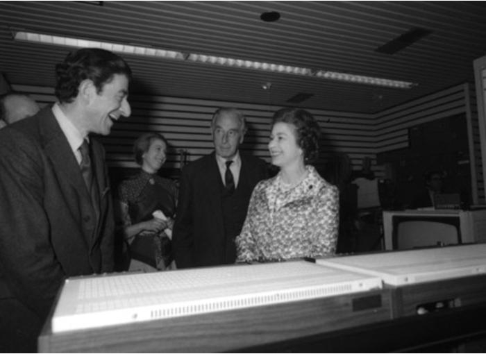 Peter Morley, HRH The Princess Anne, Lord Mountbatten and HRH Queen Elizabeth I at the Royal Opening of 195 Piccadilly in 1976 (BAFTA Archive).
