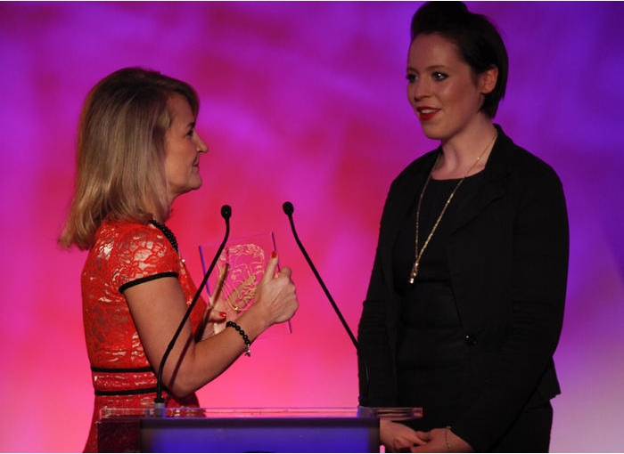 The voice of animated character Peppa Pig accepts the Presenter BAFTA.