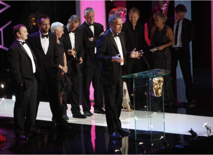 For the second year runinng, ITV's Formula One coverage claimed victory in the Sport category - this time for the season-clinching Brazilian Grand Prix. Neil Duncanson and Gerard Lane look shocked as they collected the award, believing the BBC's Olympic coverage would win (BAFTA / Marc Hoberman).