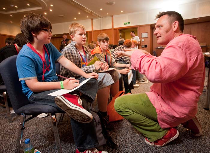 Denki’s game designer Gary Penn talks to one of the teams about keeping gameplay exciting. (Photography: Mike Wilkinson)