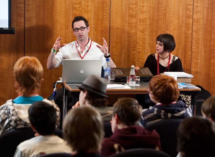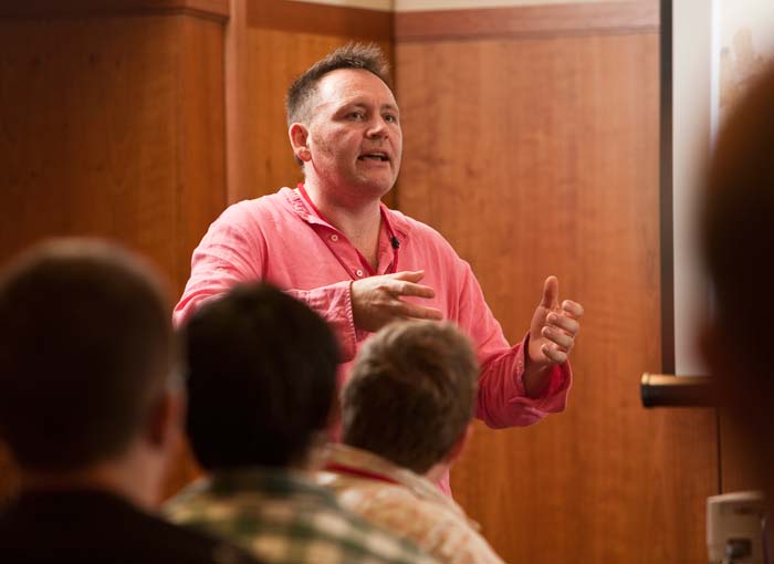 Brian Baglow, Head of Interactive Entertainment at Revolver PR, takes questions on how games are marketed. (Photography: Mike Wilkinson)