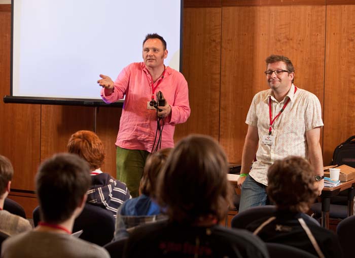 Brian is joined by Gary Penn, game design guru at Dundee-based Denki, who doesn’t even pause to plug his laptop in. (Photography: Mike Wilkinson)