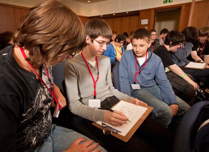 First presentation over, and the teams discuss their own game ideas, with help from the industry experts. (Photography: Mike Wilkinson)